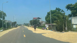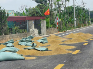 Để có diện tích phơi thóc lúa trên đường, bà M. ở Ninh Bình dùng các cục bê tông, gạch đá chặn đường, hậu quả khiến người phụ nữ đi xe máy gặp tai nạn tử vong.